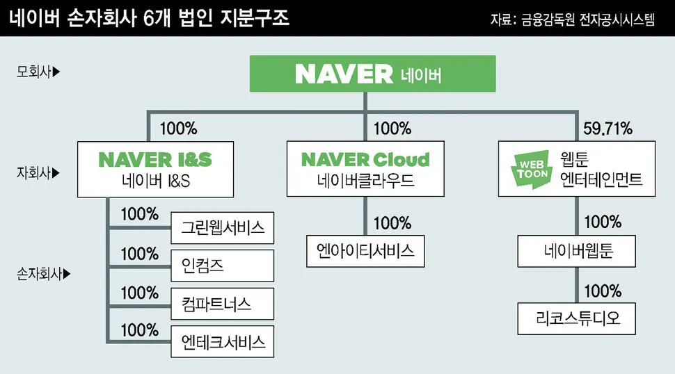 이날 파업에 참여한 6개 법인은 네이버(그린웹서비스·인컴즈·컴파트너스·엔테크서비스·엔아이티서비스)와 네이버웹툰(리코스튜디오)이 100% 지분을 보유한 자회사 또는 손자회사다. 네이버 서비스의 운영, 아이티(IT) 인프라 관리, 고객센터, 콘텐츠 제작 및 개발, 디자인 등을 맡고 있지만 본사 직원들과의 연봉 격차가 2~3배 수준인 것은 물론 명절 선물 등 복지제도도 다르다.