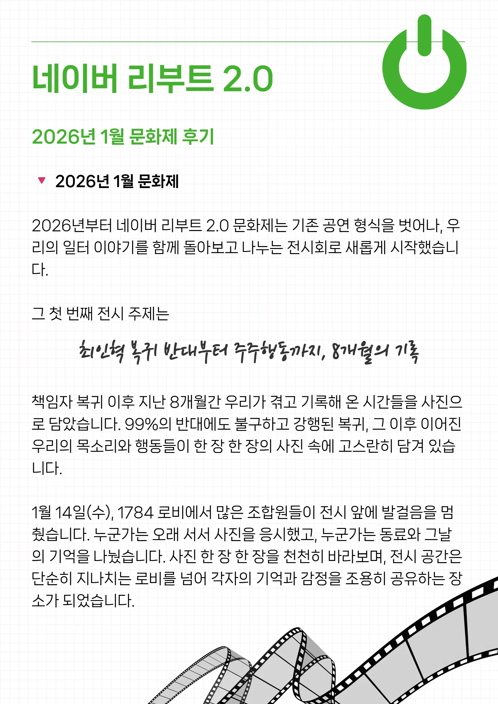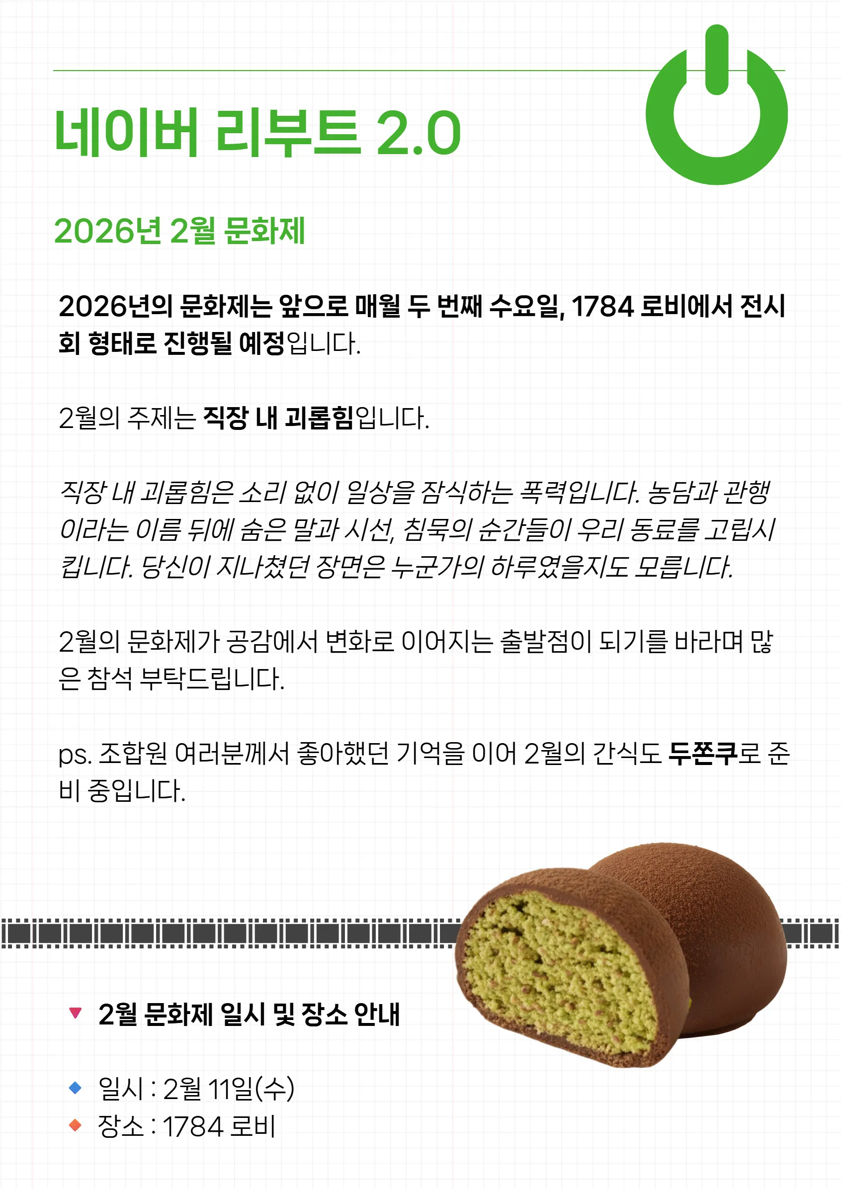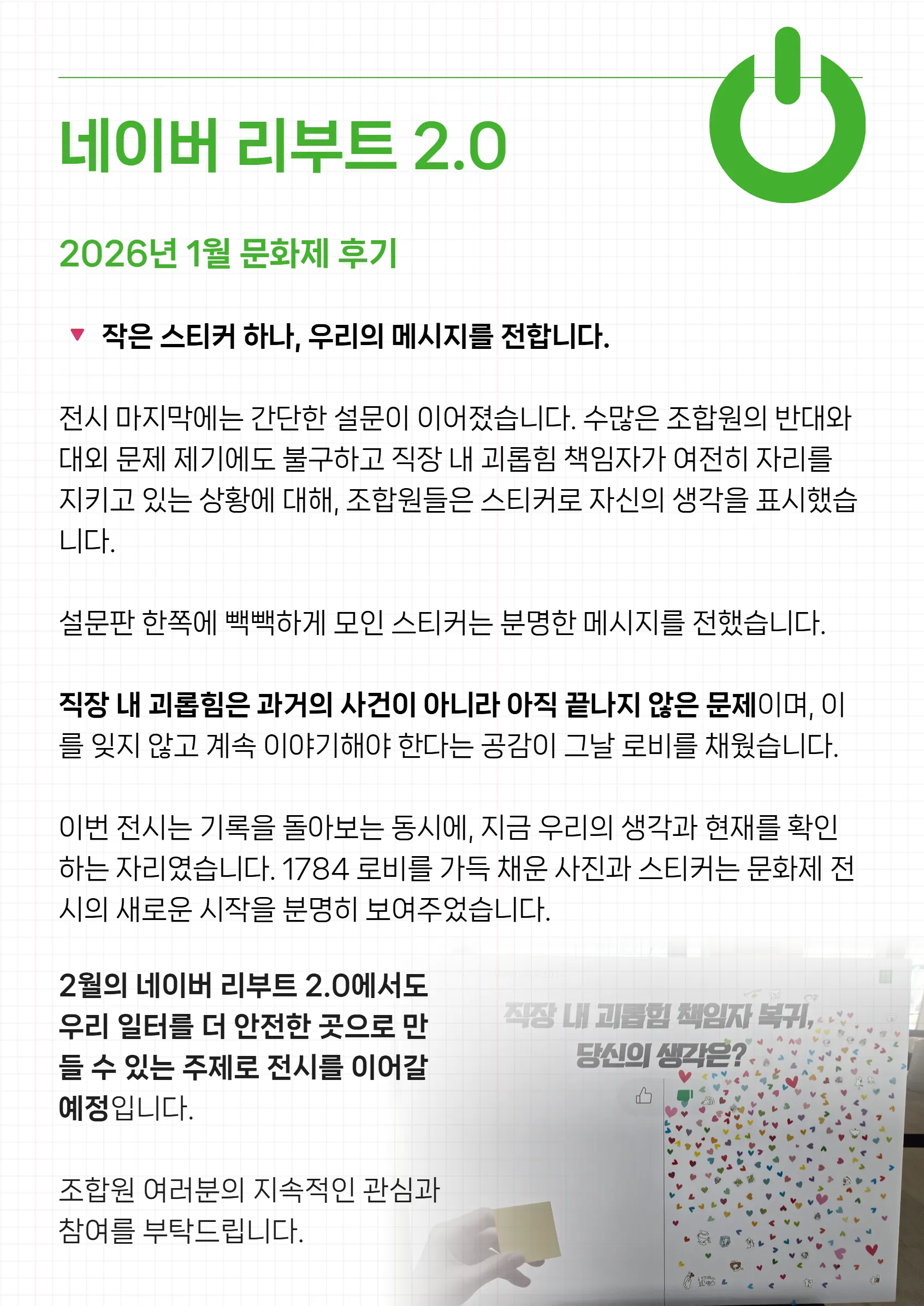 여러분의 관심이 곧 우리의 힘입니다. 설 명절 행복하게 보내시고, 2월에는 더 활기찬 모습으로 만납시다.