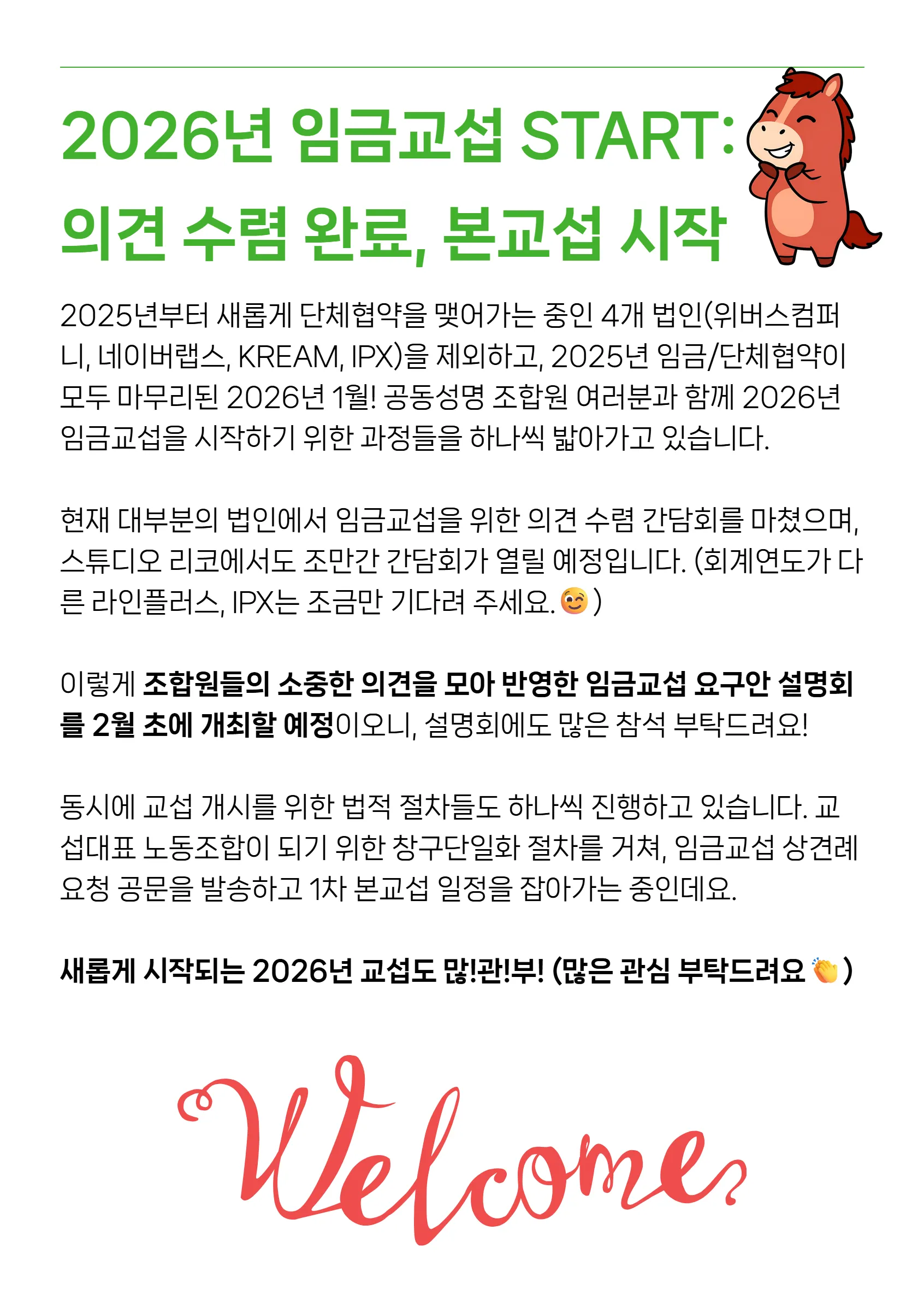 연휴가 지나면 우리는 중요한 자리 앞에 앉습니다. 바로 '임금교섭'이라는 테이블입니다. 누군가는 딱딱한 숫자 싸움이라고 하지만, 사실은 우리가 흘린 땀의 가격을 정하는 가장 중요한 시간이기도 합니다.