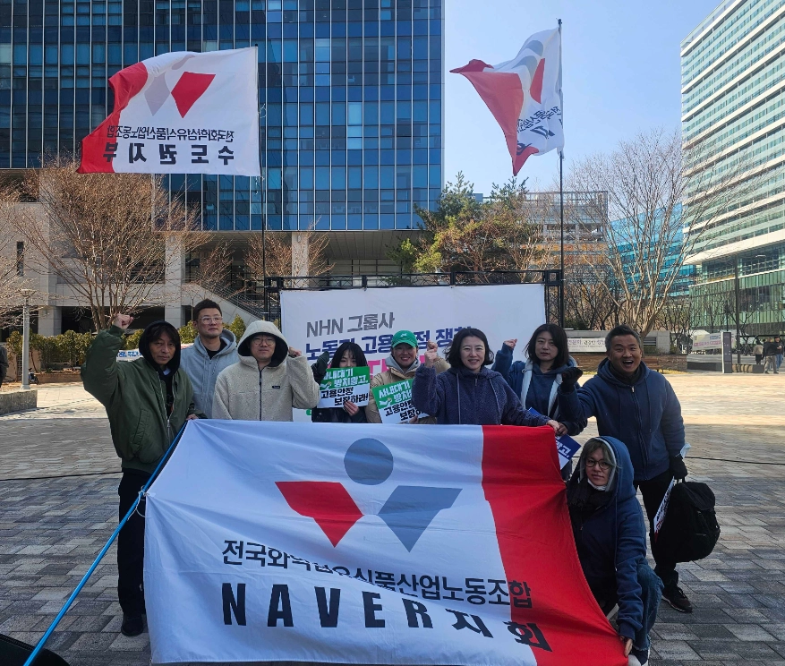 이에 NHN 지회는 그룹사의 잇단 사업 축소에 따른 구조조정에 반발하며 본사에 고용 안정을 요구하는 결의대회를 진행하였는데요, 네이버지회도 끝까지 연대하겠습니다. | 기사 보러가기