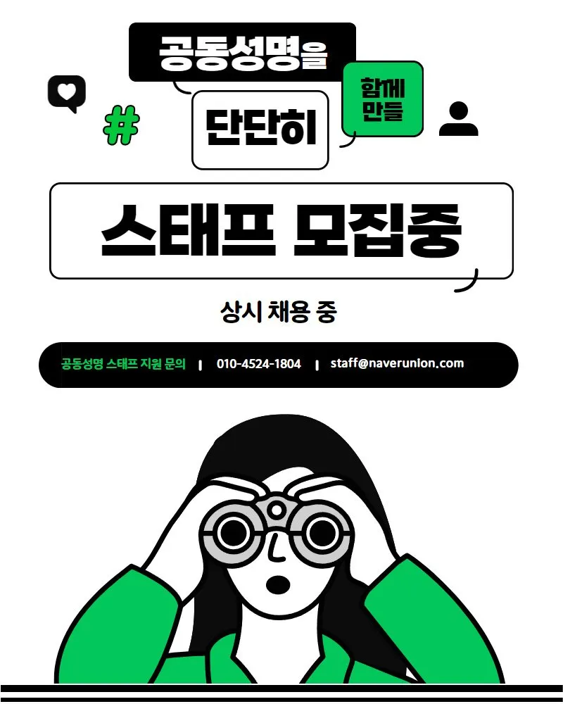 공식카페(https://cafe.naver.com/nunion)는 격주 대의원 간담회 회의록, 함께 함 공지 등 노동조합의 크고 작은 소식을 가장 먼저 전하는 채널인데요, 조합원이라면 꼭 가입해 주세요!!